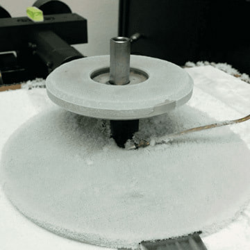 40℃までの低温での摩耗実験を行うため、摩耗過程の接触部分を取り外し可能な筐体に完全に封じ込め、陽圧で冷たい乾燥空気を導入しています。
