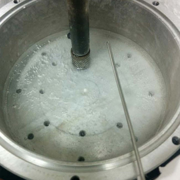 カップ内の液体を150℃まで加熱する液体加熱コイルを用意しています。カップの付属品として、5000rpmでも潤滑テストが可能なドロップバイドロップ潤滑オプションがあります。
