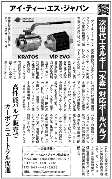 2021年7月27日発刊の日刊工業新聞「環境特集」に記事が掲載されました。
