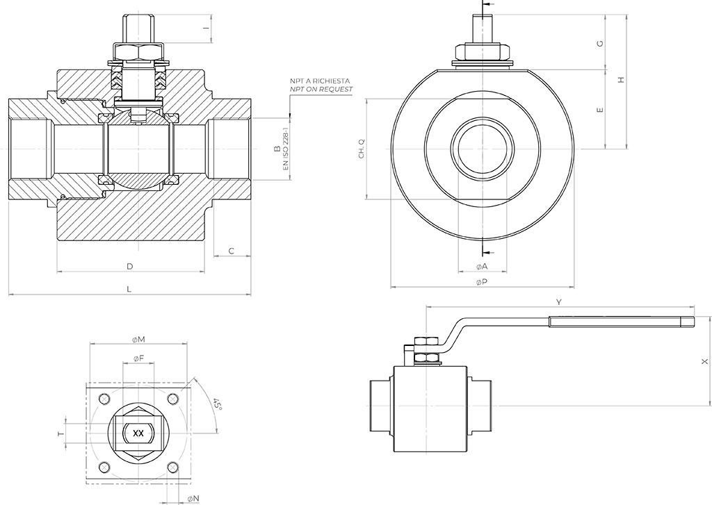 | PN - Size | DN 08 1/4" | DN 10 3/8" | DN 15 1/2" | DN 20 3/4" | DN 25 1" | DN 32 1"1/4 | DN 40 1"1/2 | DN 50 2" |