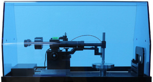 40℃までの低温での摩耗実験を行うため、摩耗過程の接触部分を取り外し可能な筐体に完全に封じ込め、陽圧で冷たい乾燥空気を導入しています。